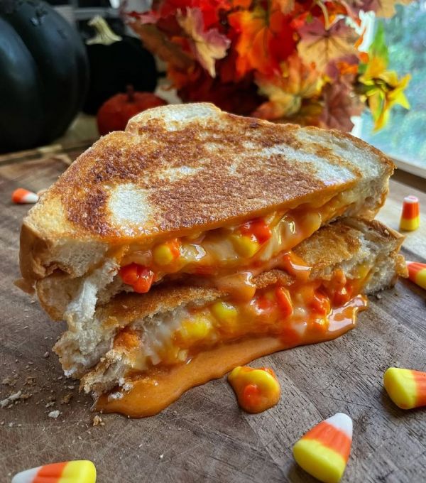 This Halloween, you're probably going to recieve a lot of candy corn. It's the most popular of all Halloween candies. You--or at least Marcoux--can accomplish much with it, such as this candy corn grilled cheese sandwich.